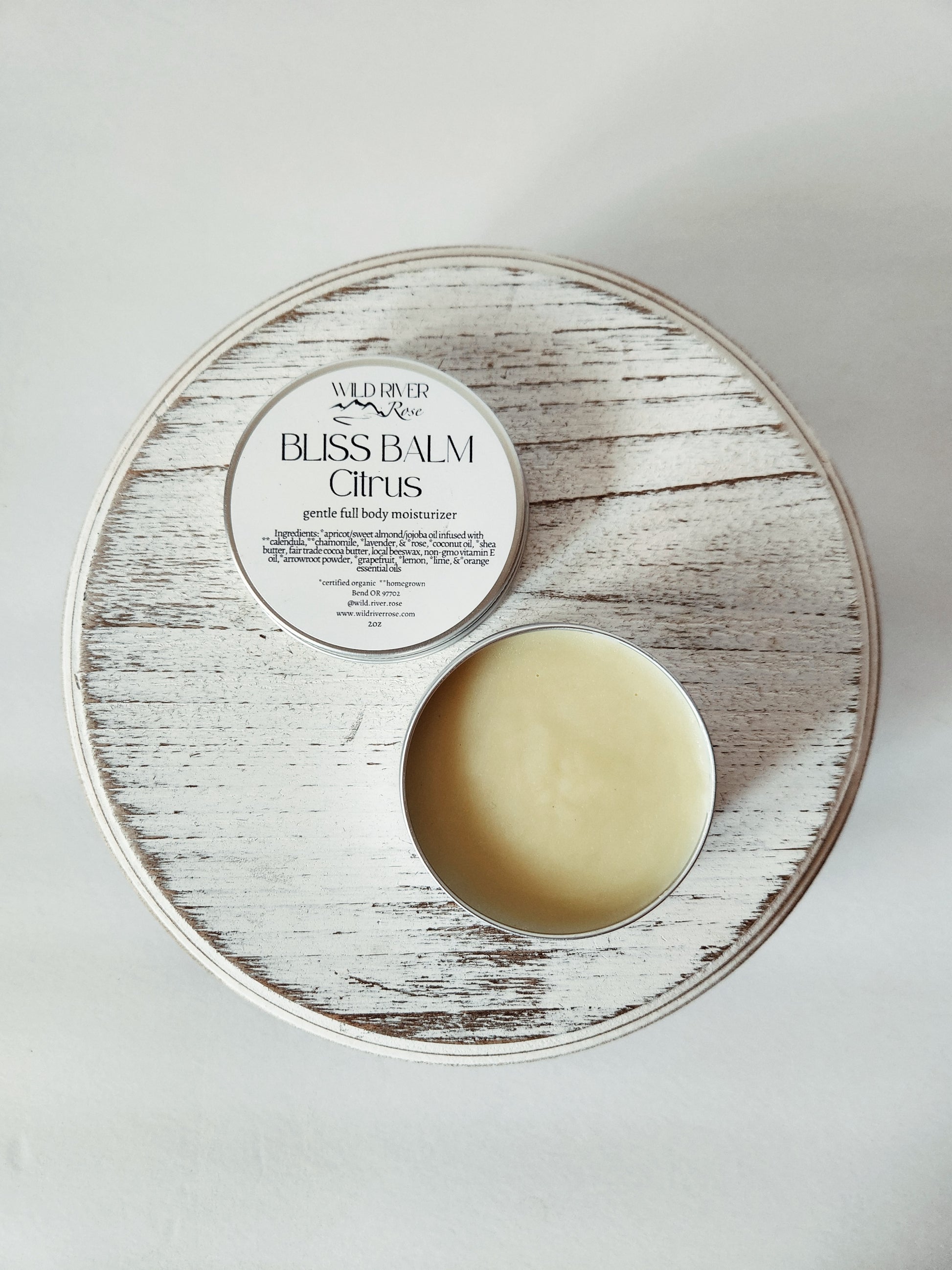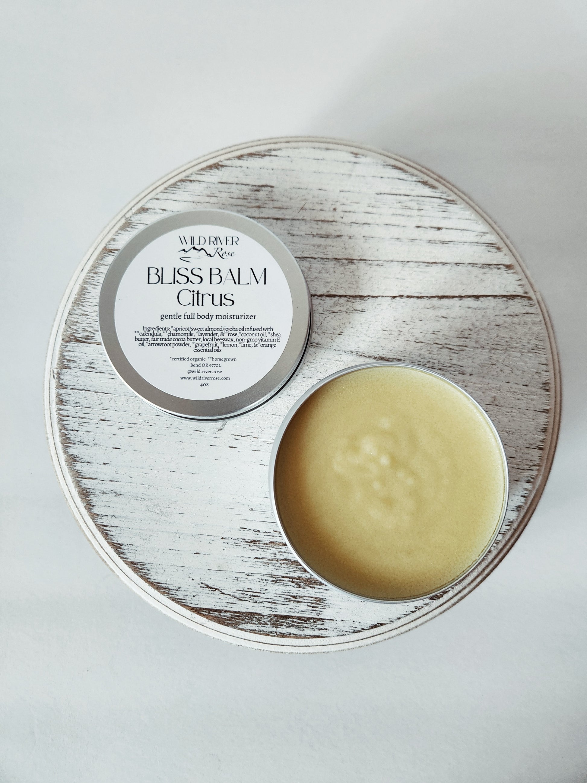 Ingredients: *apricot/sweet almond/jojoba oil infused with **calendula,**chamomile, *lavender, & *rose,*coconut oil, *shea butter, fair trade cocoa butter, local beeswax, non-gmo vitamin E oil,*arrowroot powder, *grapefruit, *lemon, *lime, &*orange essential oils