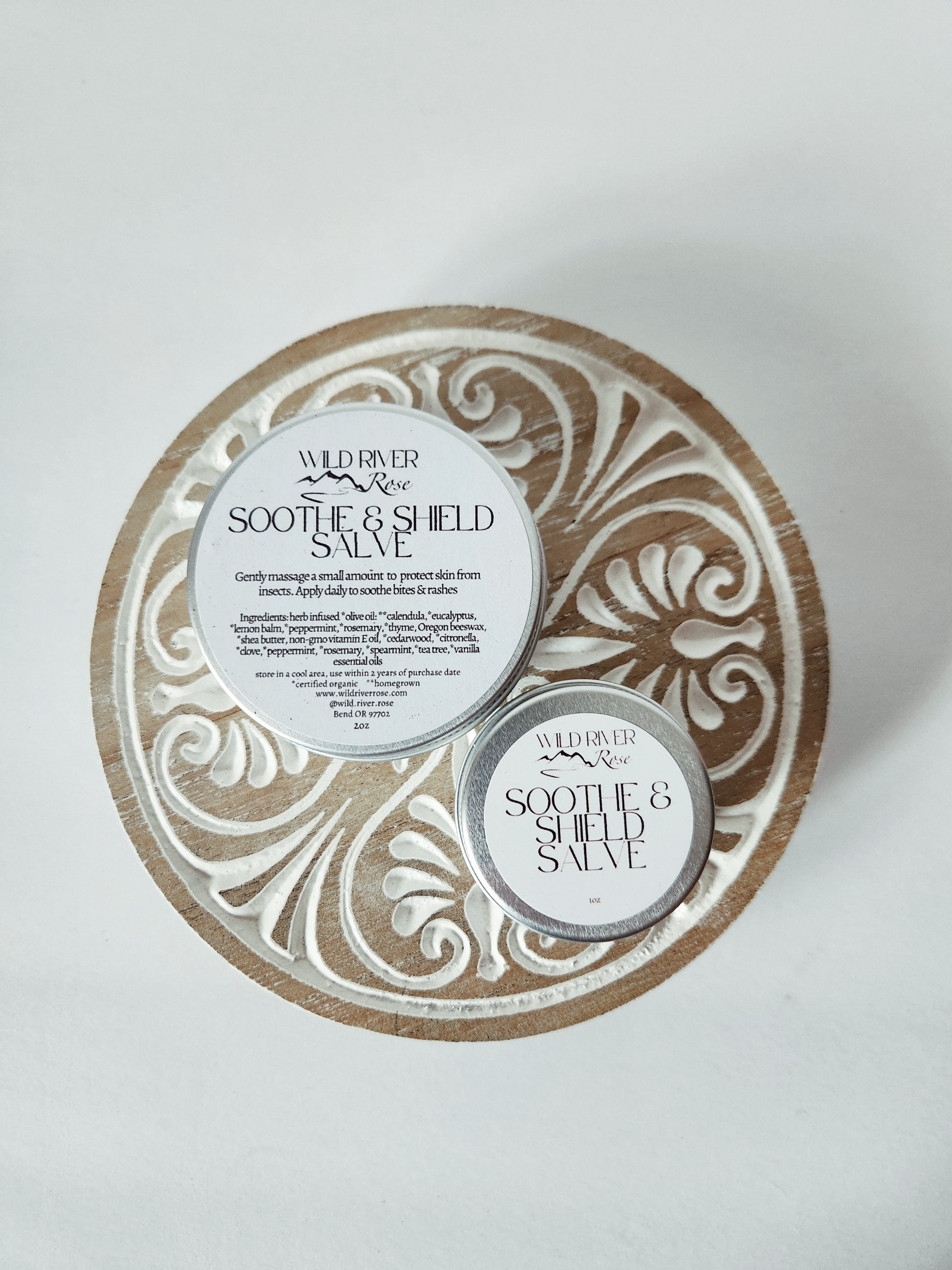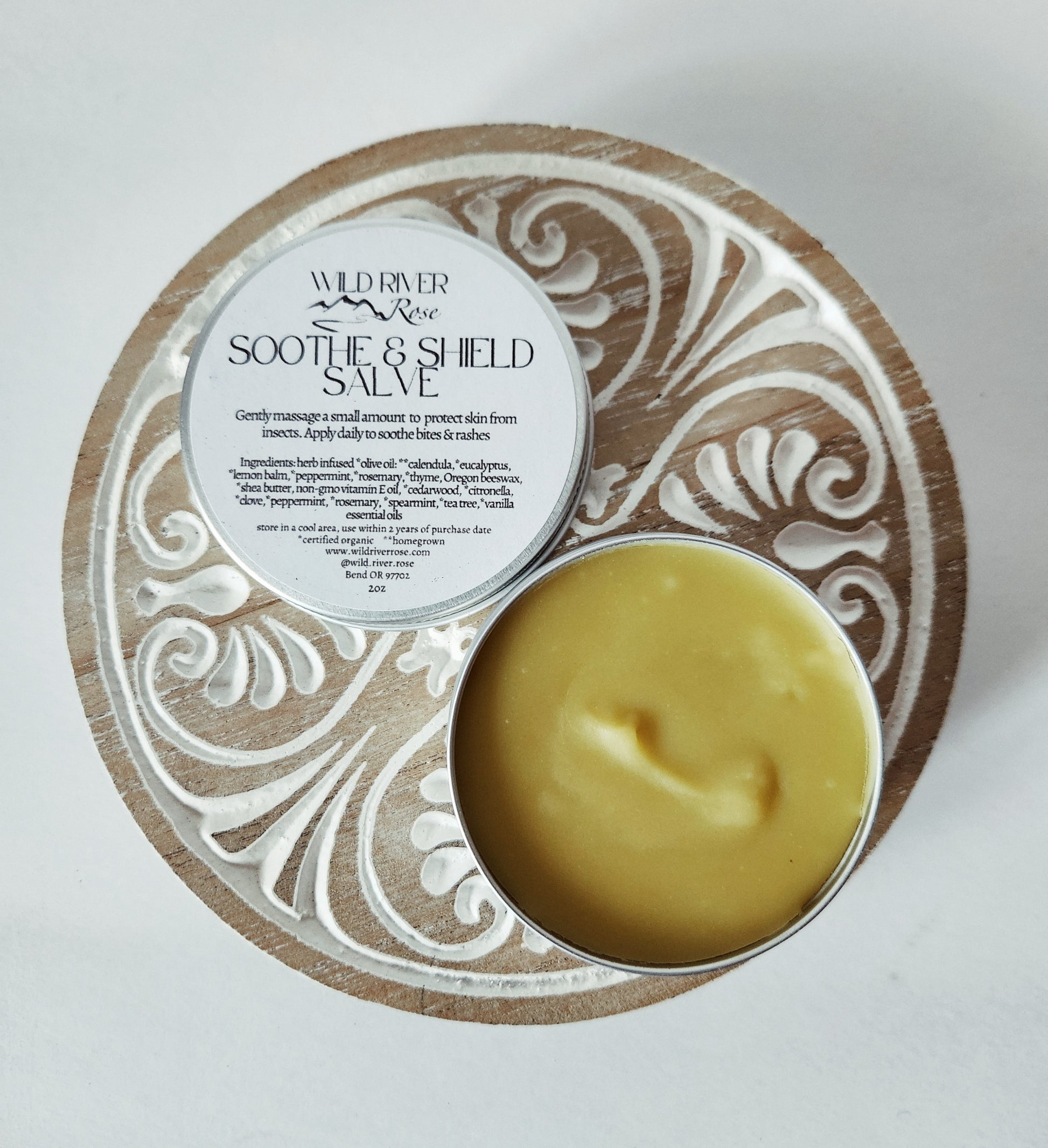 A powerful blend of infused herbs and essential oils crafted to keep pesky bugs at bay while soothing insect bites. Harnessing the potency of nature, our salve features a synergistic mix of bug-deterring botanicals and essential oils like rosemary, eucalyptus, and lemon balm, citronella, lemongrass, and clove, combined with skin-soothing calendula. Tea tree provides itch relief and prevents infection.
