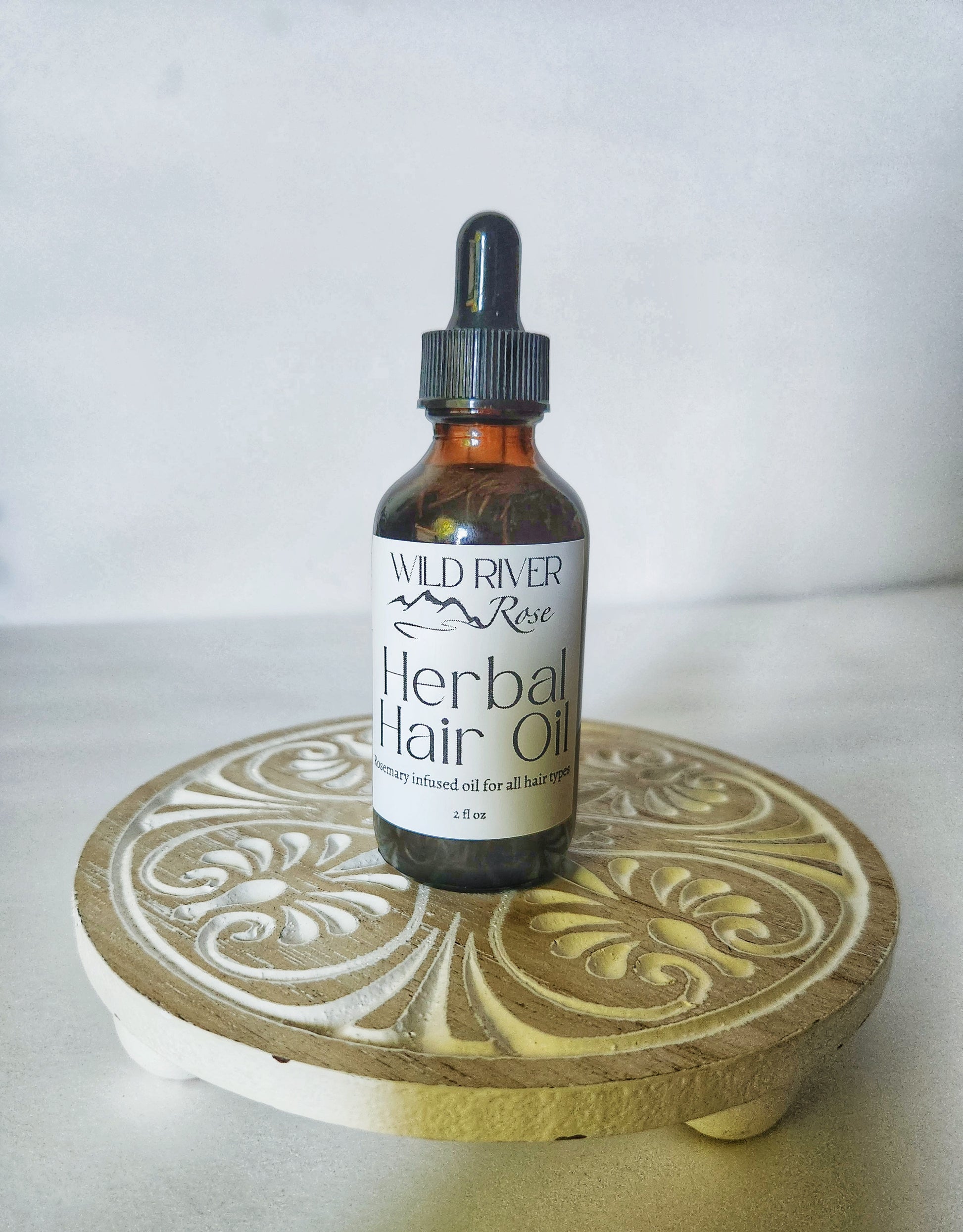 Our rosemary infused hair oil blends the invigorating essence of dried organic rosemary with organic extra virgin olive oil. This combination of herb and oil infused for 8 weeks.
