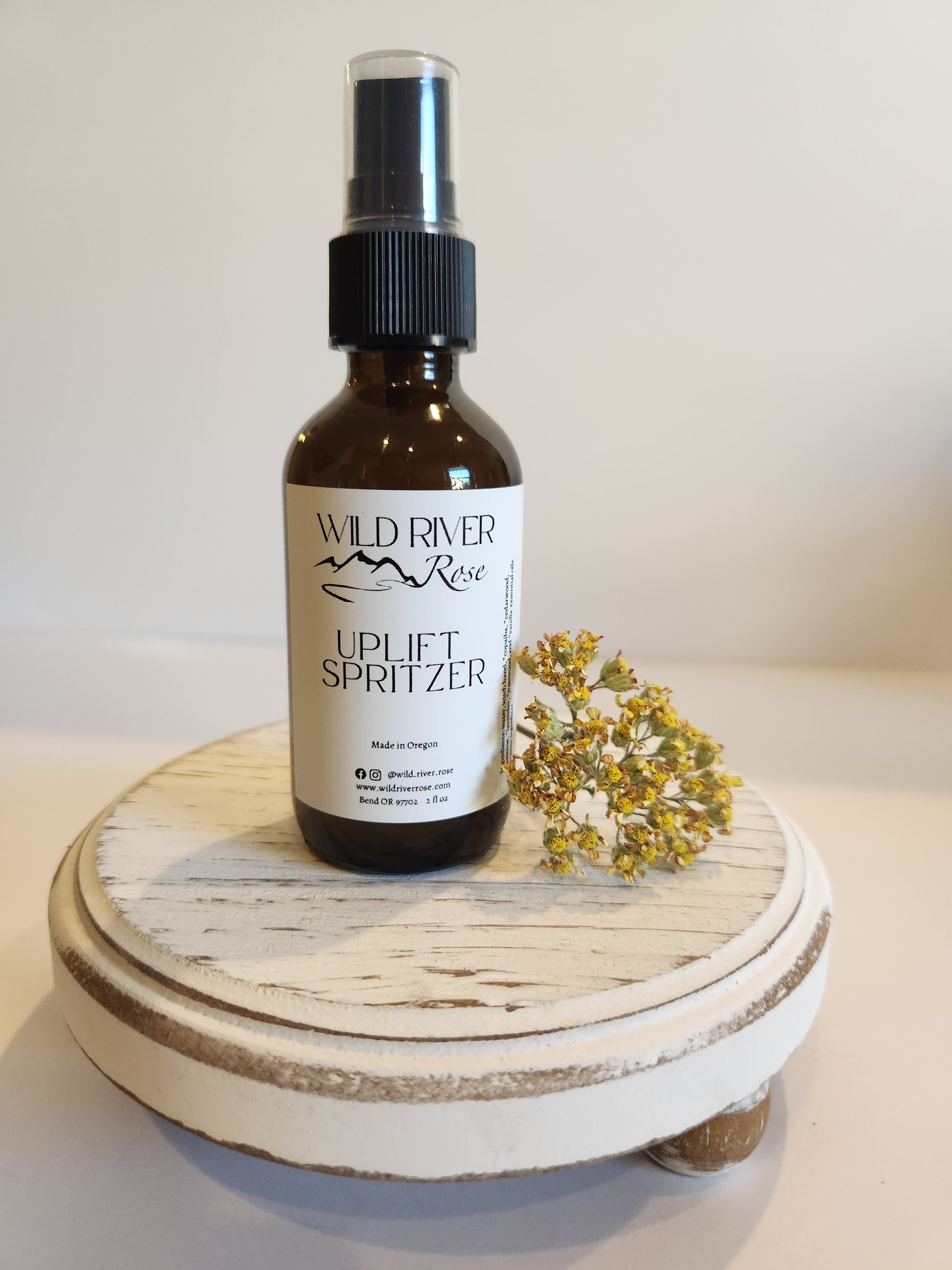 The essential oils in this spritzer are intended to elevate and uplift thoughts. Shake well and spritz onto self, in room or car, or on pillow.